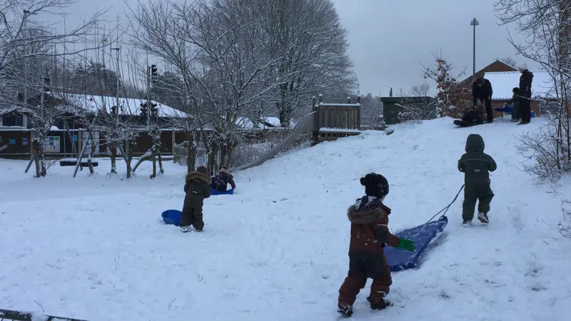 foto: Vi har kælket rigtig meget denne vinter, på vores egen bakke og på bakken ude i skoven.