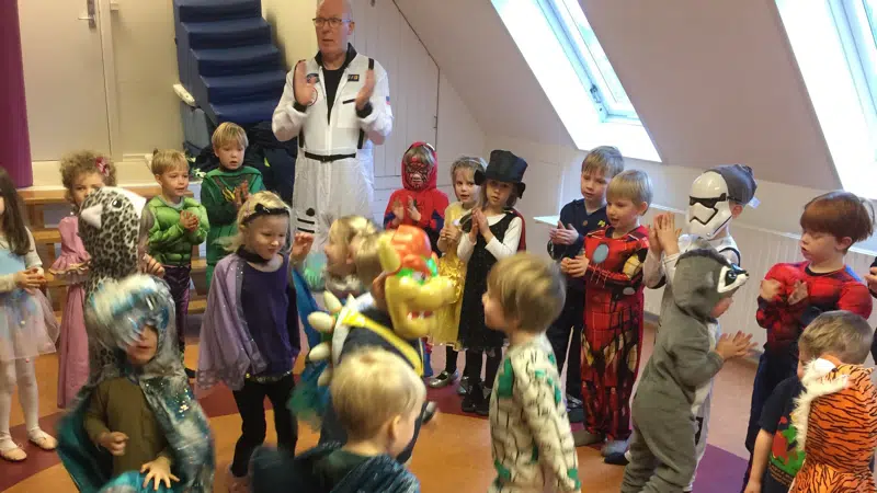 foto: Vi holder mange årstidsfester, her er det fastelavn. Anders var Astronaut.