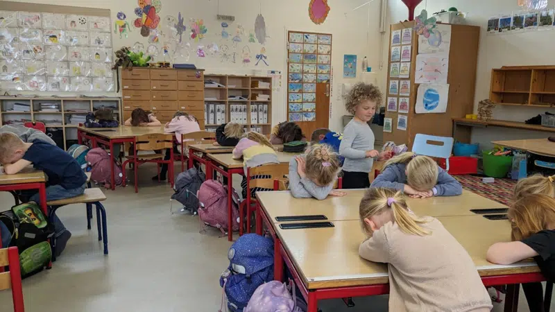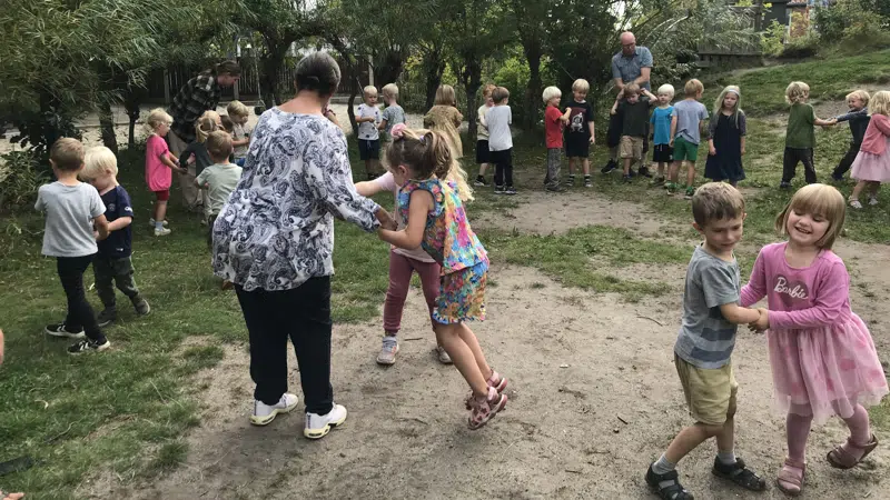 foto: Vi besøger Sejs skole og leger en leg sammen med 0. klasse