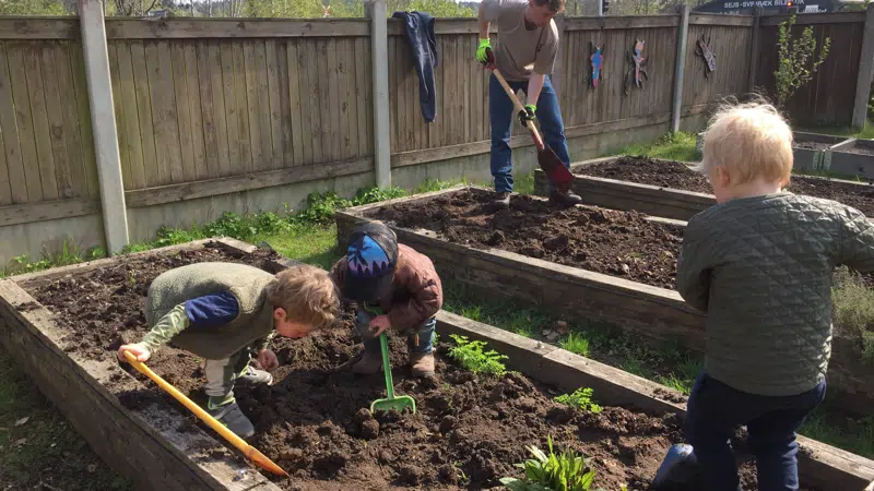 foto: Komposten tømmes og indholdet graver vi ned i urtehaven
