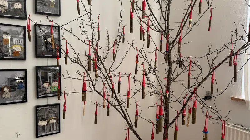 For at skabe julestemning i Sejs-Svejbæk har vi sagt ja til at pynte et juletræ, som står lokalt. Gr. 1 har den sidste uge i november lavet juletræspynt af naturmaterialer, vi vil gerne vise, at vi er en skovbørnehave.