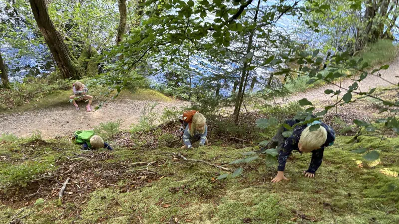 - Vi giver alle børn i Tyttebærhuset mulighed for at være i skoven og opleve naturens elementer og styrke alle sanser.
